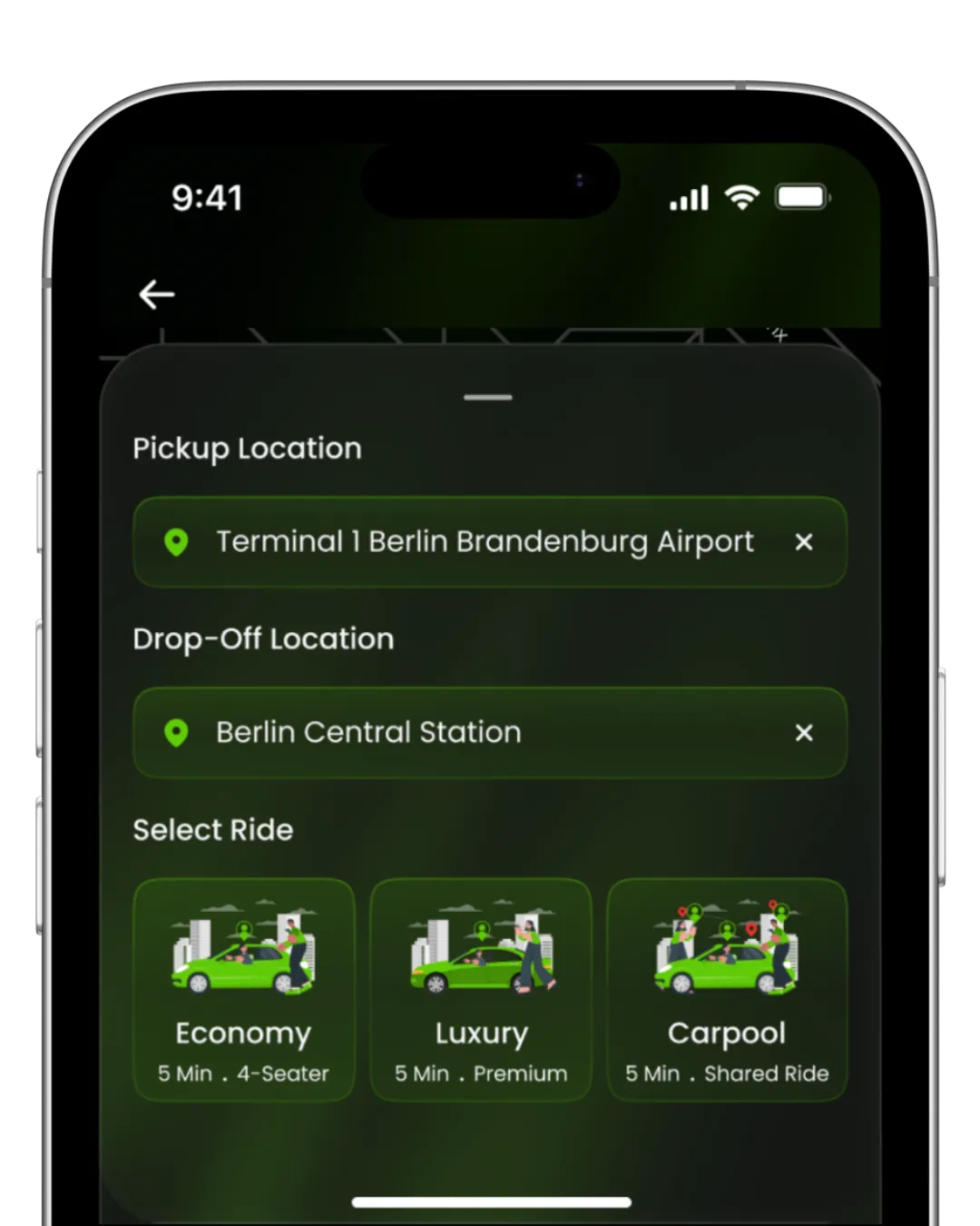 Choose from Economic, Luxury, or Carpool rides to match your needs, preferences, and budget.