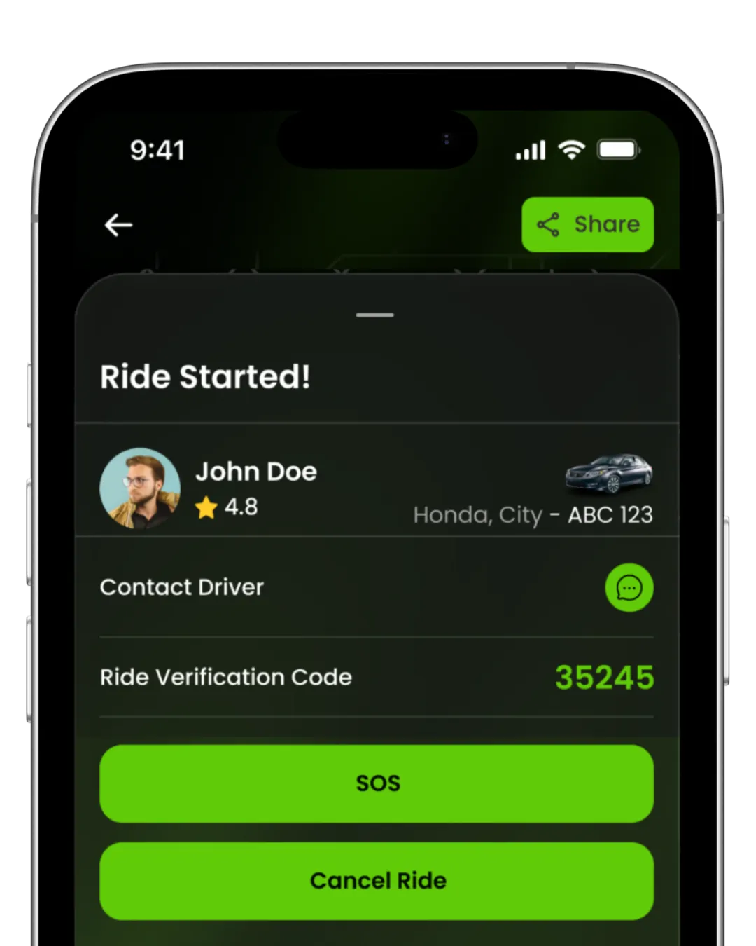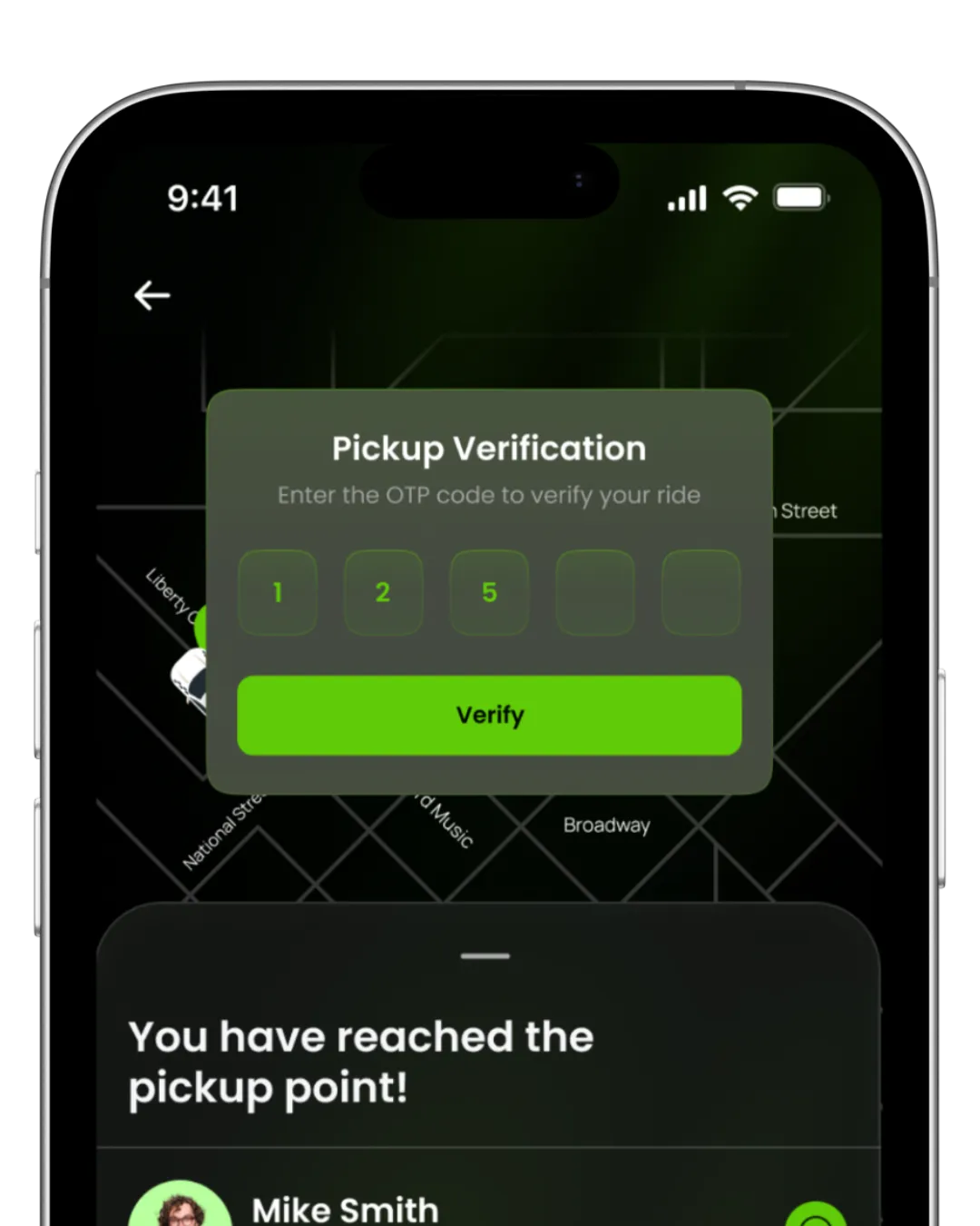 Every ride is secured with a unique verification code to ensure the correct driver and passenger match.